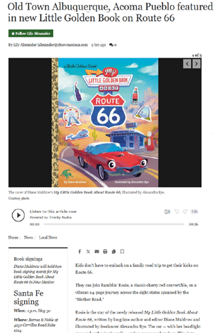 The Sana Fe New Mexican has an excellent article on their website about the many wonderful sites Diane visited in preparation for her new book, My Little Golden Book About Route 66. These include Santa Fe’s Old Town, and the Acoma Pueblo, one of the oldest continuously inhabited places in North America.